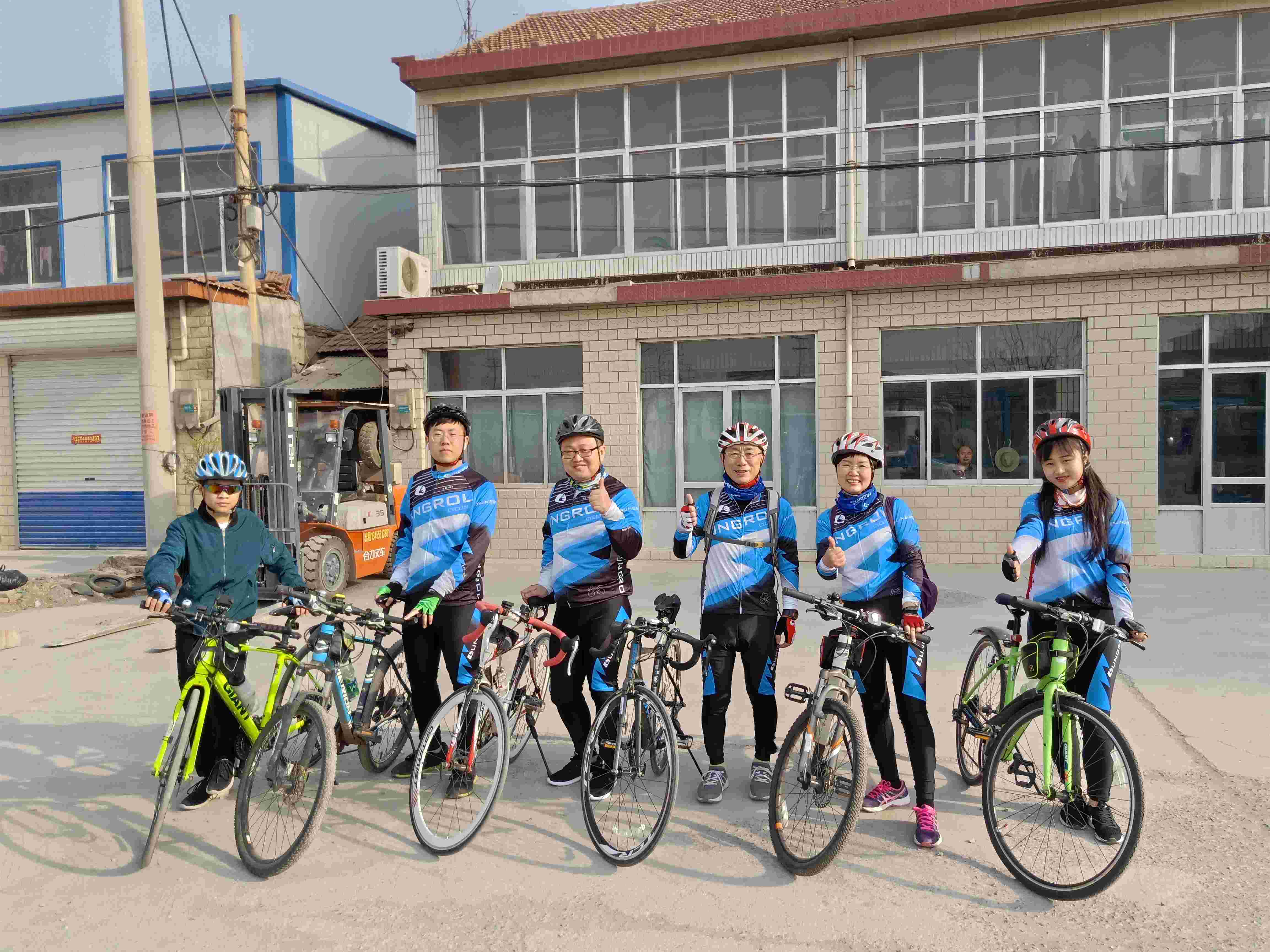 圖為參與此次活動的公司騎行團成員準備出發。
