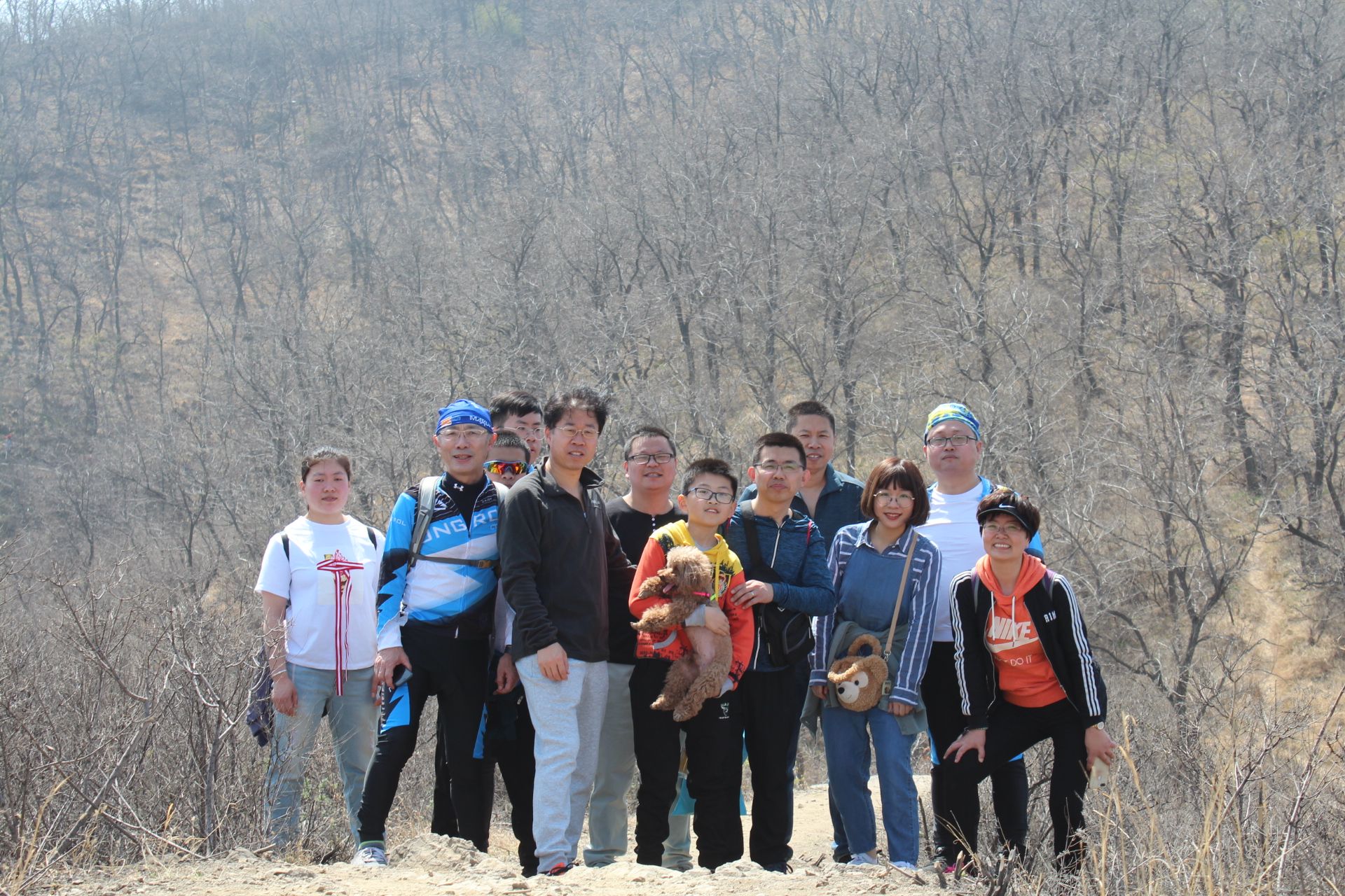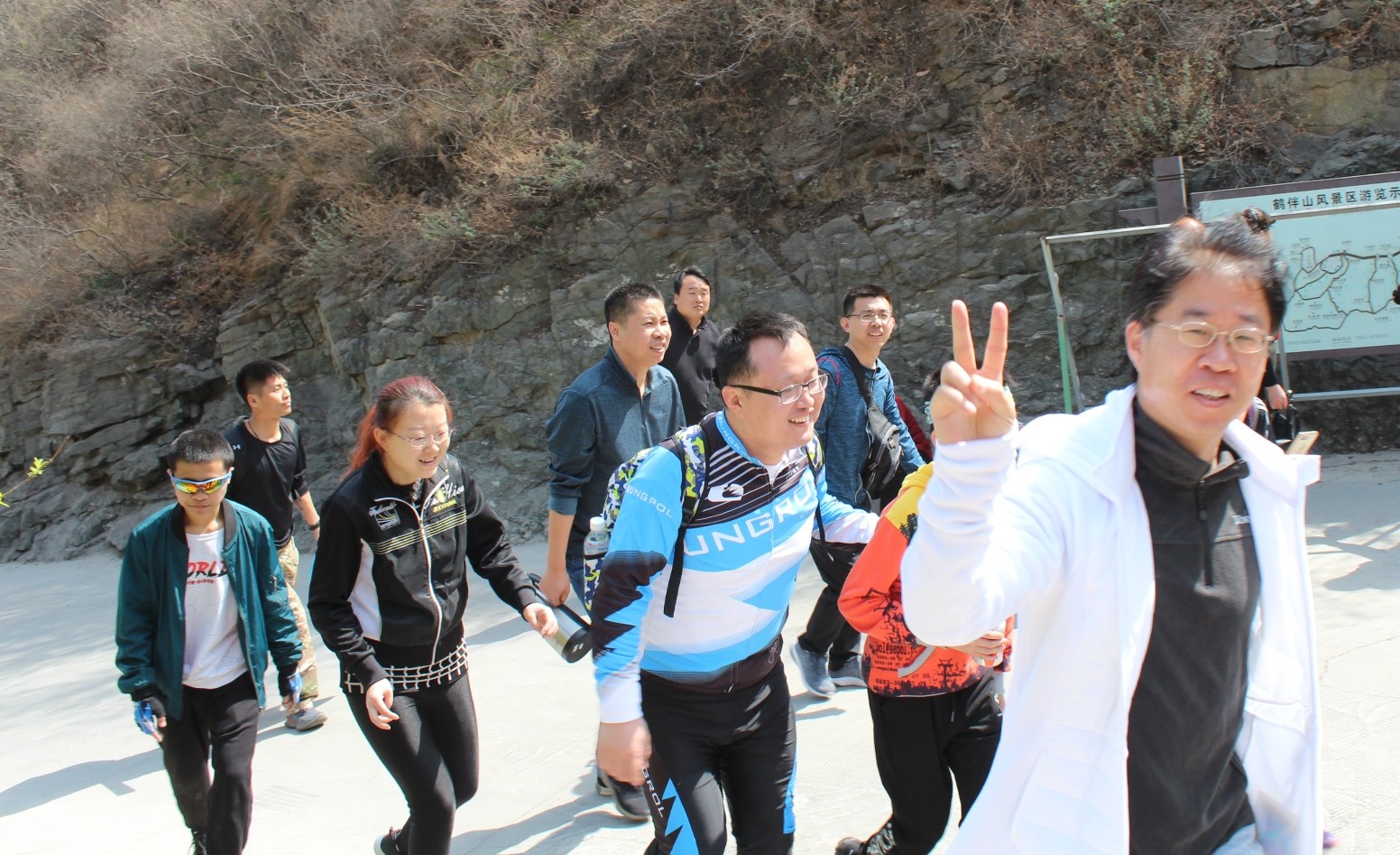 圖為董事、總經理楊冰先生(右一)及社團成員在爬山途中。