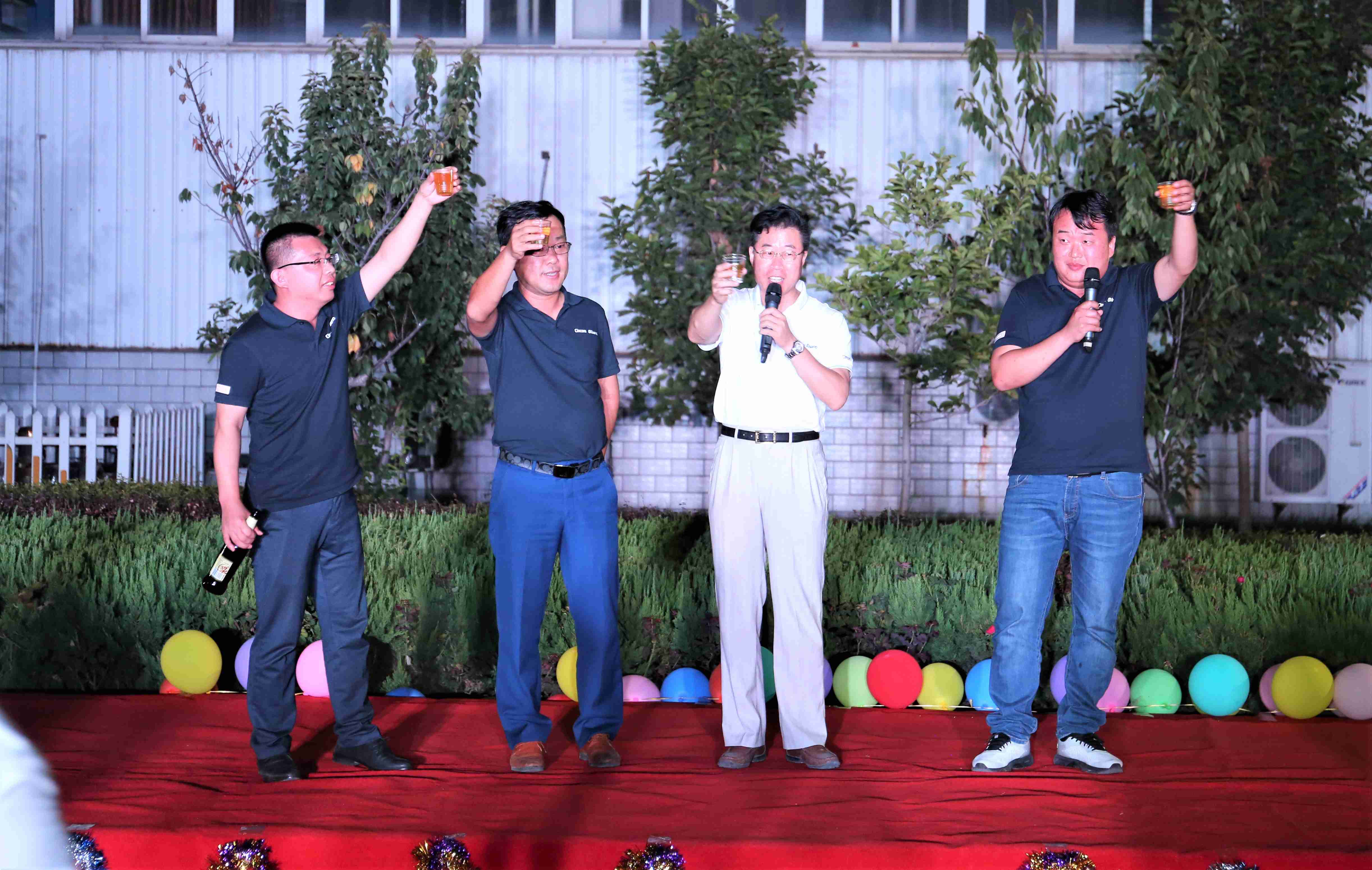 18點整伴隨著青春洋溢的開場舞,BBQ大會正式拉開帷幕。日本母公司常務取締役執行役員篠原浩先生及公司董事長渡邊修司先生,董事、總經理楊冰先生分別致辭,感謝員工的辛勤付出,感謝家屬在背后的默默奉獻,感謝兄弟公司新景集團及日本母公司的大力支持。隨后楊冰帶領三位本部長共同舉杯,聚餐活動正式開始。