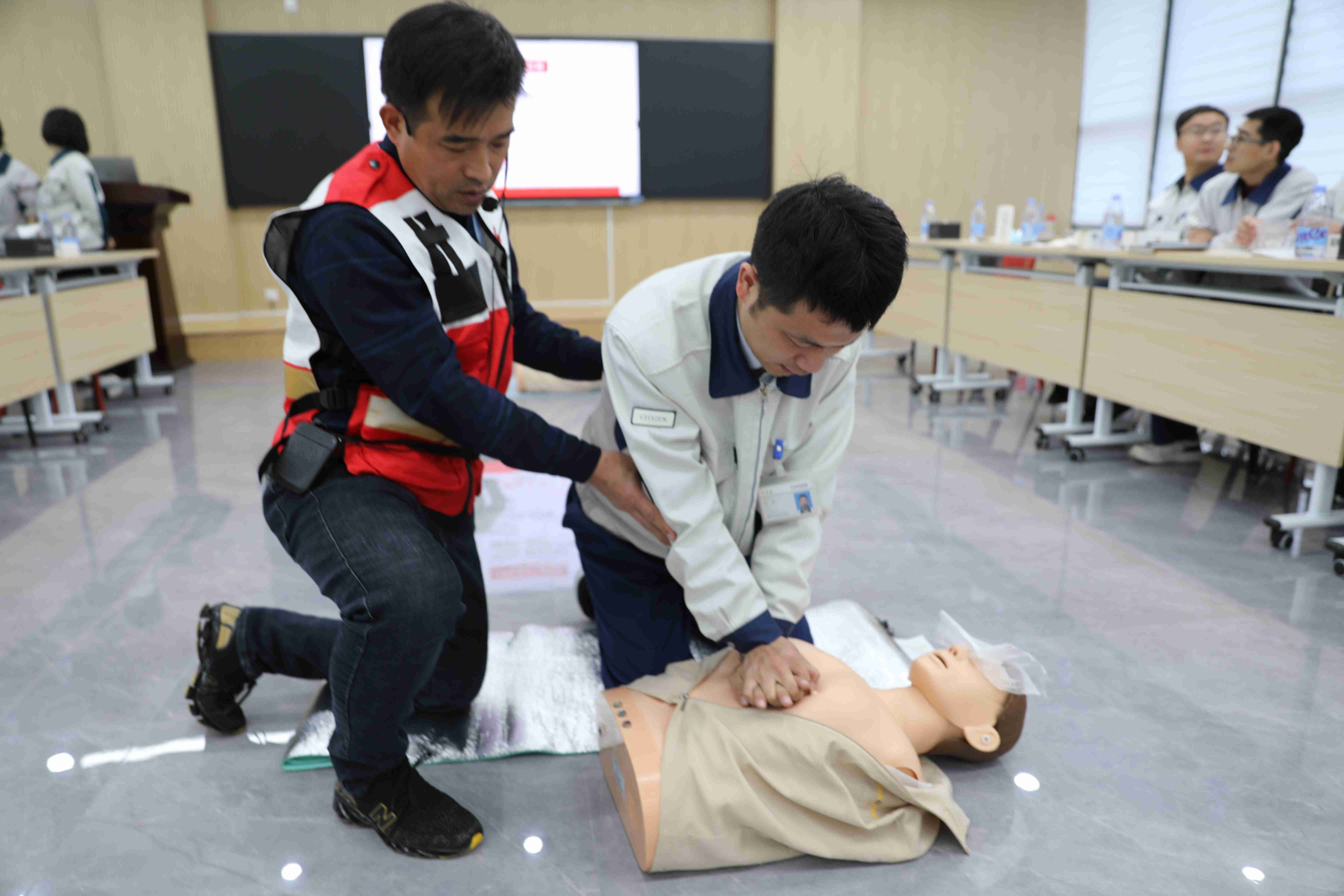 圖為培訓老師指導學員進行心肺復蘇