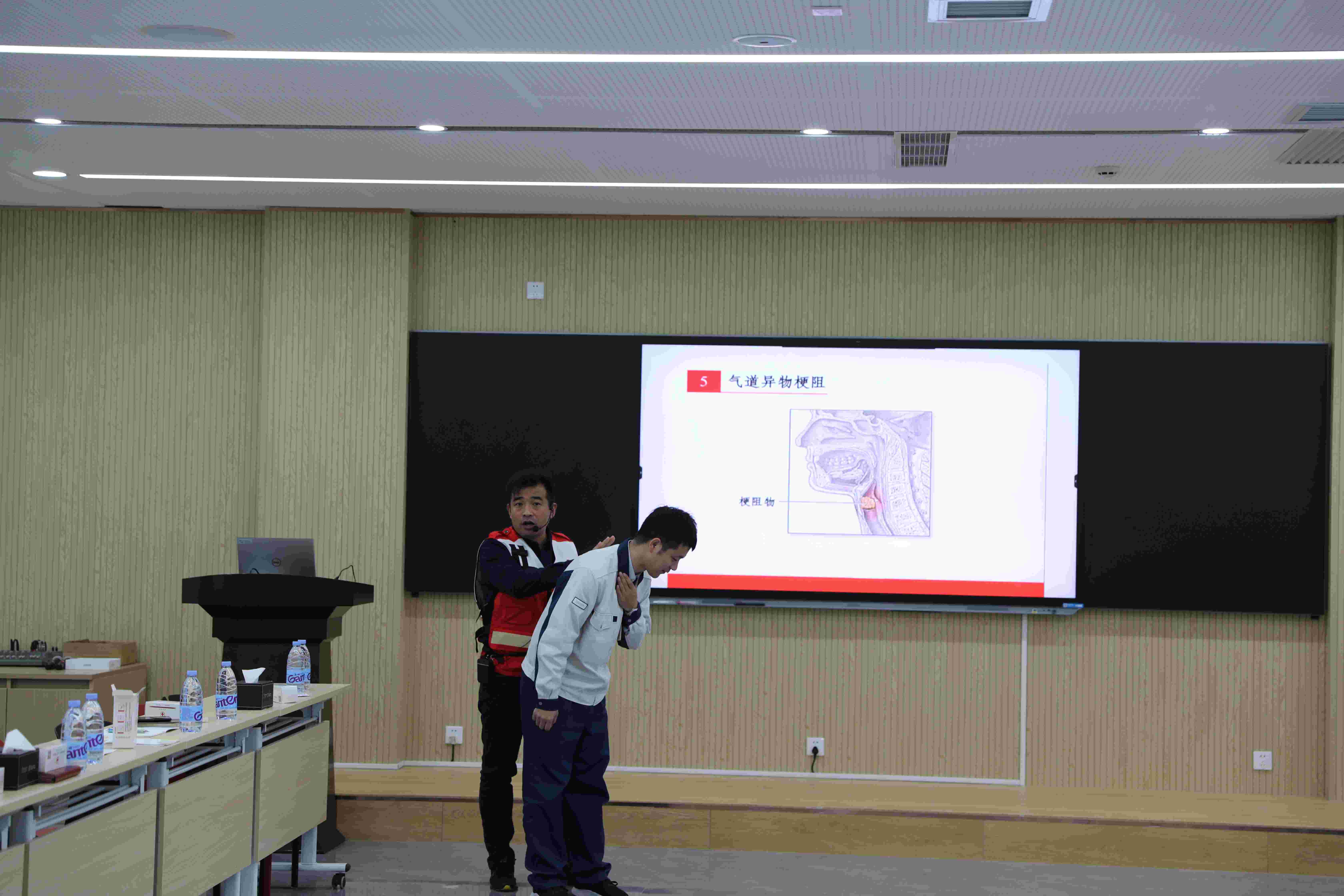圖為培訓老師指導學員進行氣道異物梗阻現場急救