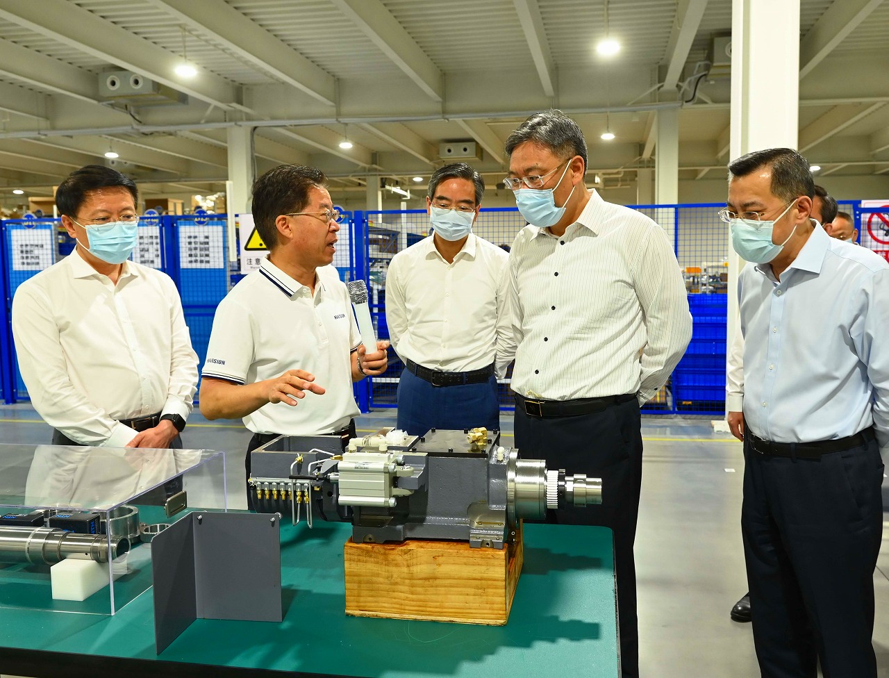 王文濤詳細聽取了山東新景集團董事長、西鐵城(中國)精密機械有限公司董事總經(jīng)理楊冰對產(chǎn)業(yè)園生產(chǎn)經(jīng)營、產(chǎn)品研發(fā)、市場開拓等情況的介紹,參觀了方案中心及生產(chǎn)車間并給予充分肯定。王文濤指出工業(yè)母機是國家基礎(chǔ)制造能力的綜合體現(xiàn),特別是高檔數(shù)控機床,其技術(shù)水平代表了國家工業(yè)化的水平,西鐵城新景高端裝備智能制造產(chǎn)業(yè)園的優(yōu)勢要形成模式大力推廣,確保產(chǎn)業(yè)鏈供應(yīng)鏈暢通,強化產(chǎn)業(yè)鏈協(xié)同創(chuàng)新,切實把制造業(yè)做大做優(yōu)做強。