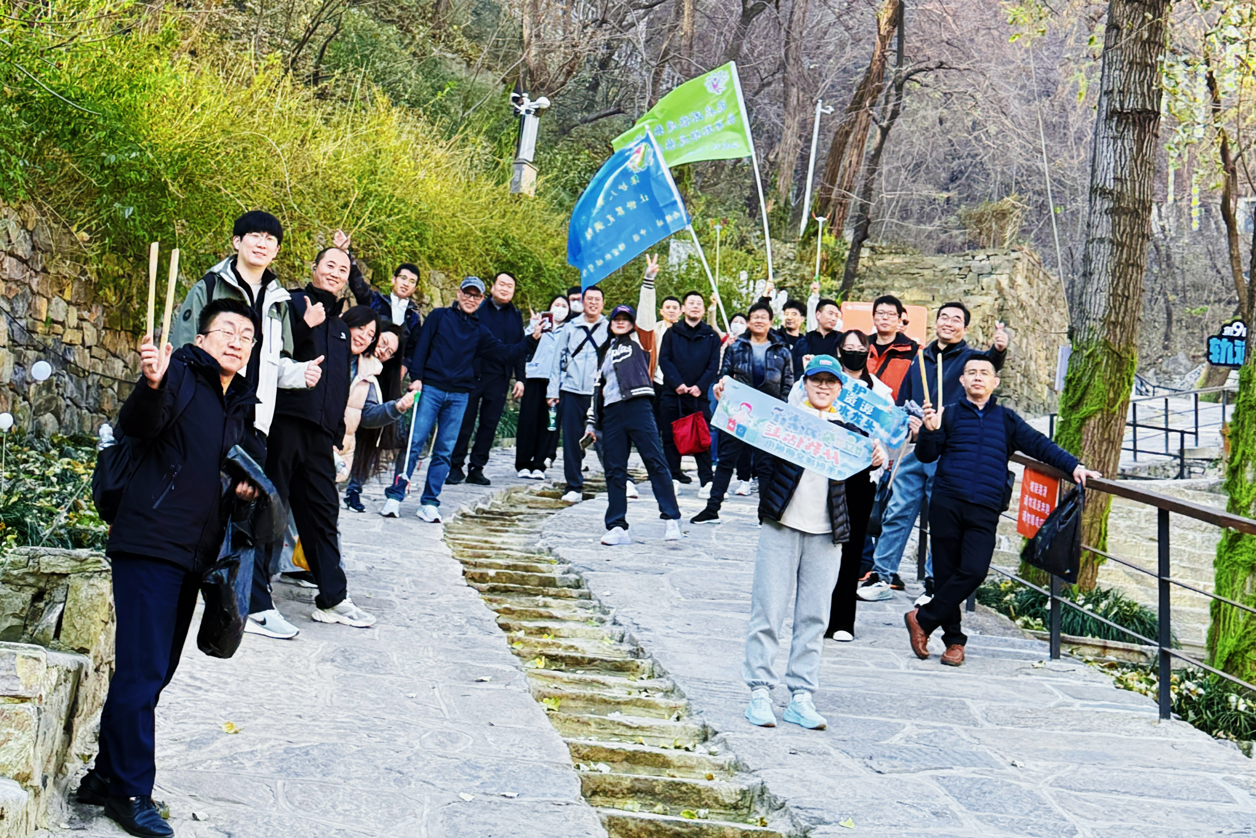 活動當日,公司領導干部組成的志愿者隊伍在登山過程中,沿途清理步道及周邊的廢棄塑料瓶、包裝袋等垃圾,以實際行動還原山林潔凈。同時,還積極向沿途游客宣講環保知識,通過邀請游客朗讀環保標語、發放可重復使用環保袋等互動方式,倡導減少一次性塑料制品的使用,踐行綠色、低碳的生活方式。